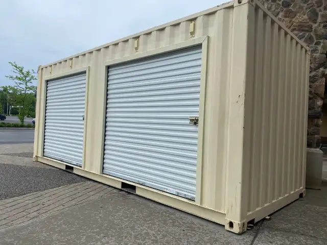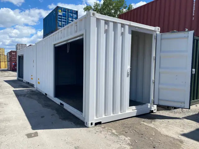 A unidade considera duas janelas no caso de 20 pés e 4 quando for de 40 pés. Uma porta de acesso e mantém as portas originais do container
