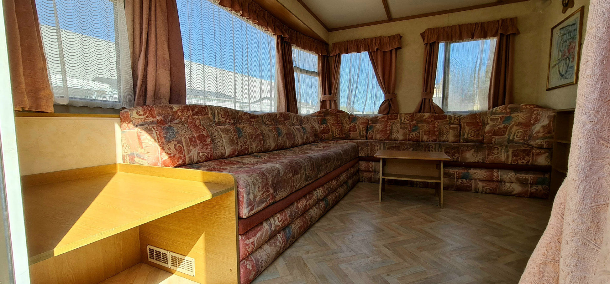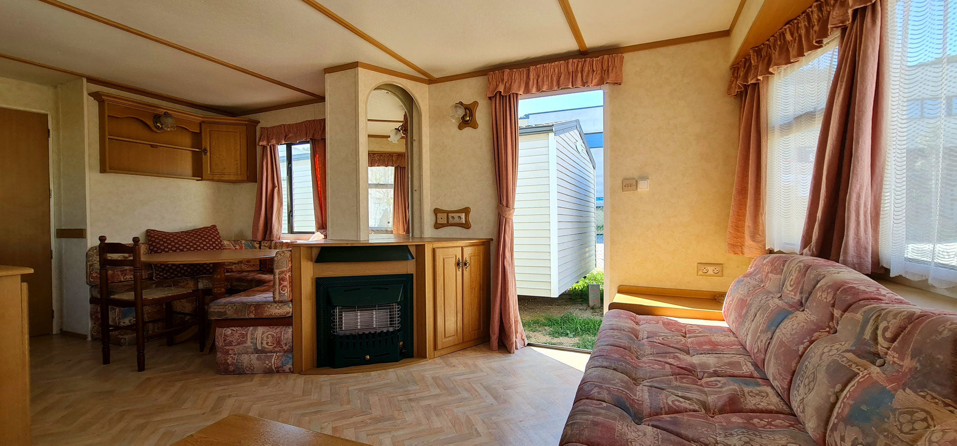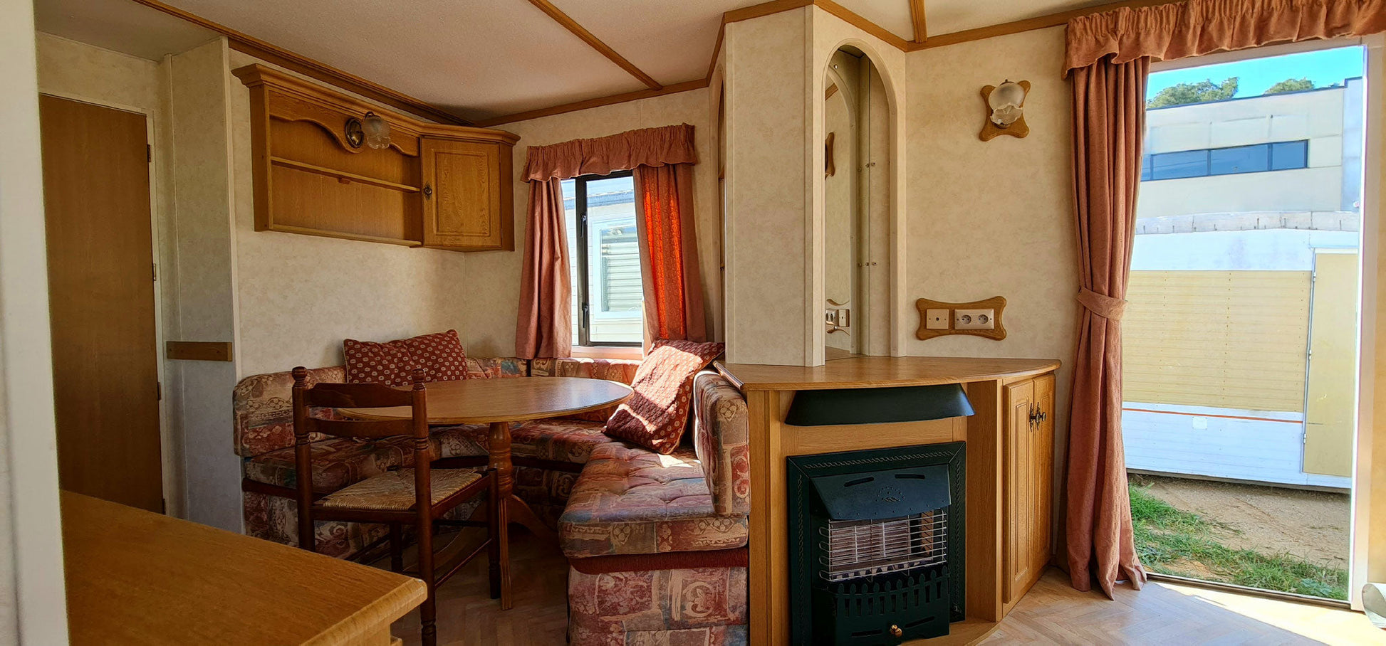- Salón amplio y luminoso con sofá-cama y calefactor de gas tipo chimenea