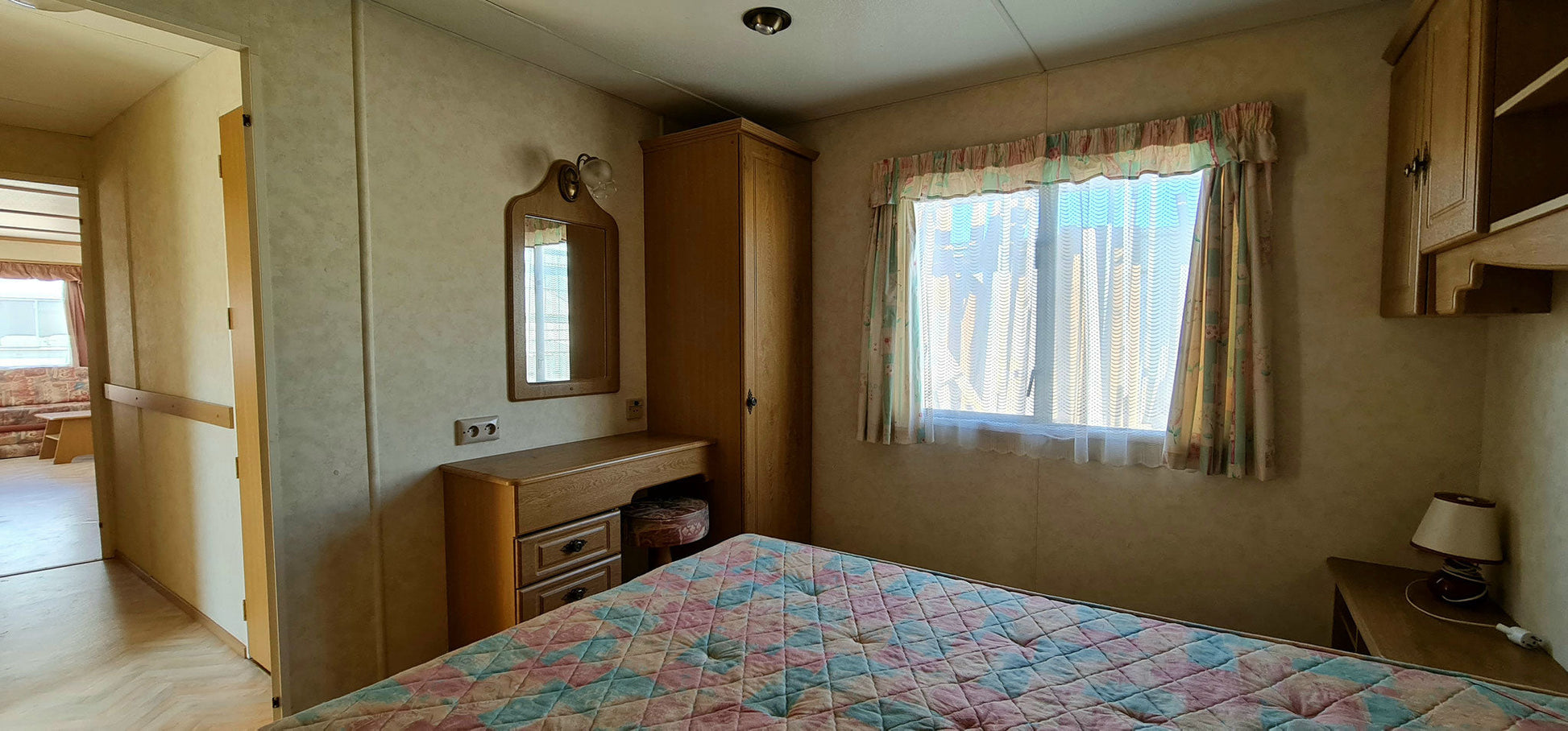 - Un dormitorio amplio con cama de matrimonio, armarios y baño (WC + lavamanos)